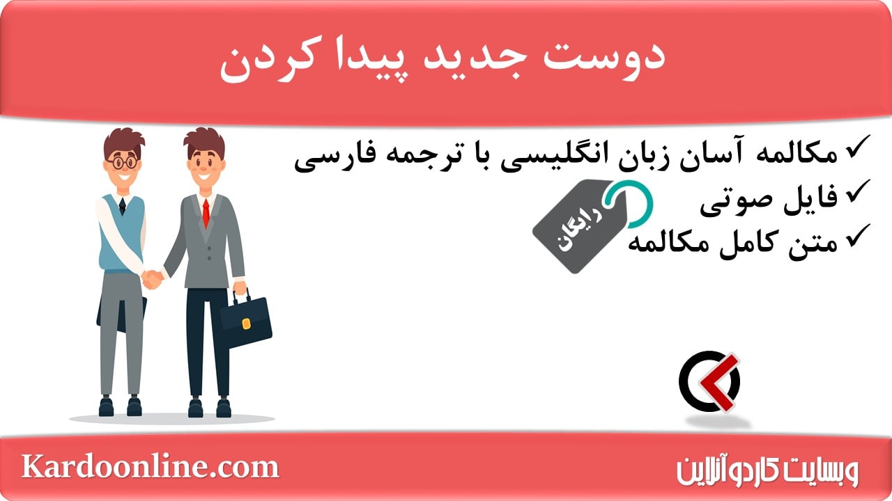 مجموعه مکالمات ساده و آسان انگلیسی – درس شماره شانزدهم از فصل رویدادهای اجتماعی: دوست جدید پیدا کردن در این مطلب از وبسایت کاردوآنلاین، یکی دیگر از دروس مجموعه مکالمات