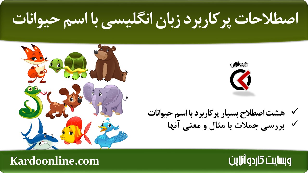 هشت اصطلاح پرکاربرد زبان انگلیسی با اسم حیوانات در این مطلب از وبسایت کاردوآنلاین، هشت اصطلاح بسیار پرکاربرد زبان انگلیسی با اسم حیوانات را برای شما در نظر گرفته ایم.