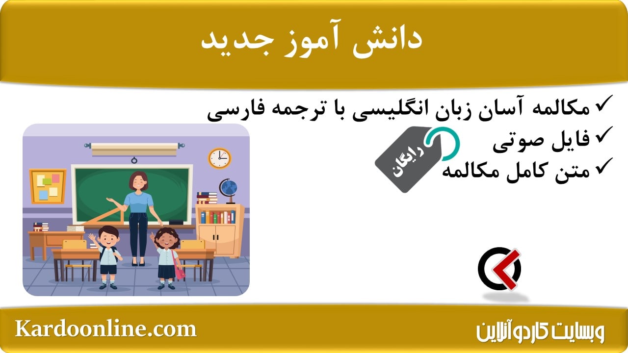 مجموعه مکالمات ساده و آسان انگلیسی – درس شماره پنجم از فصل زندگی محصلی: دانش آموز جدید در این مطلب از وبسایت کاردوآنلاین، یکی دیگر از دروس مجموعه مکالمات ساده
