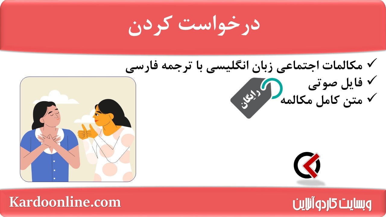 مجموعه مکالمات اجتماعی زبان انگلیسی – درس شماره سی و هفتم: درخواست کردن در این مطلب از وبسایت کاردوآنلاین، یکی دیگر از دروس مجموعه مکالمات اجتماعی زبان انگلیسی را برای