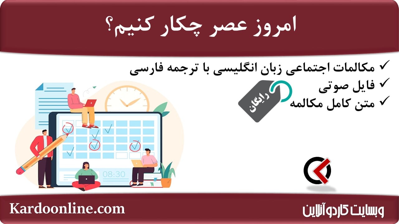 مجموعه مکالمات اجتماعی زبان انگلیسی – درس شماره چهلم: امروز عصر چکار کنیم؟ در این مطلب از وبسایت کاردوآنلاین، یکی دیگر از دروس مجموعه مکالمات اجتماعی زبان انگلیسی را برای