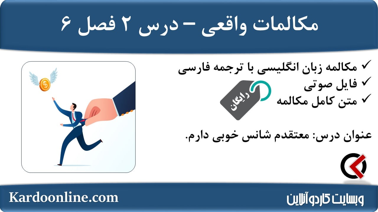 مکالمات واقعی زبان انگلیسی (کار): معتقدم شانس خوبی دارم. در این مطلب از وبسایت کاردوآنلاین، یک درس دیگر با عنوان معتقدم شانس خوبی دارم. از مجموعه دروس مکالمات واقعی زبان