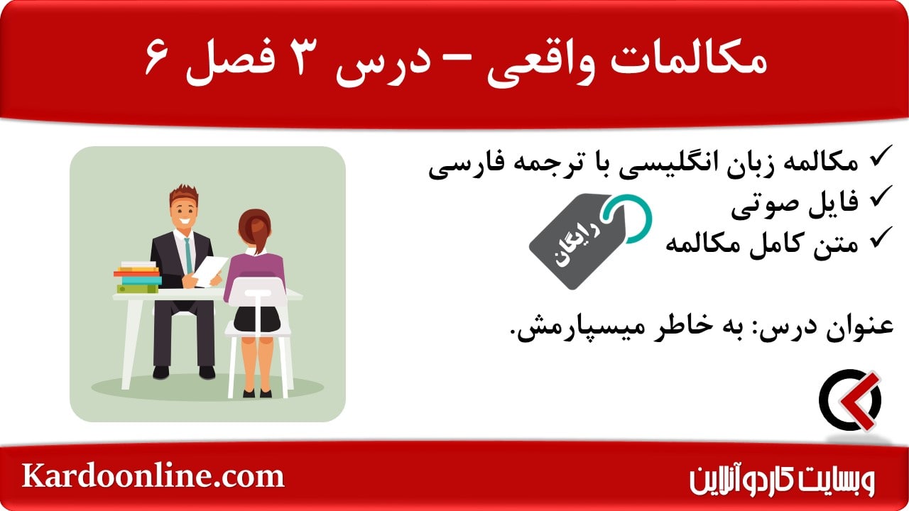مکالمات واقعی زبان انگلیسی (کار): به خاطر میسپارمش. در این مطلب از وبسایت کاردوآنلاین، یک درس دیگر با عنوان به خاطر میسپارمش. از مجموعه دروس مکالمات واقعی زبان انگلیسی در