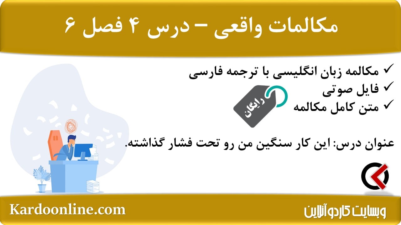 مکالمات واقعی زبان انگلیسی (کار): این کار سنگین من رو تحت فشار گذاشته. در این مطلب از وبسایت کاردوآنلاین، یک درس دیگر با عنوان این کار سنگین من رو تحت