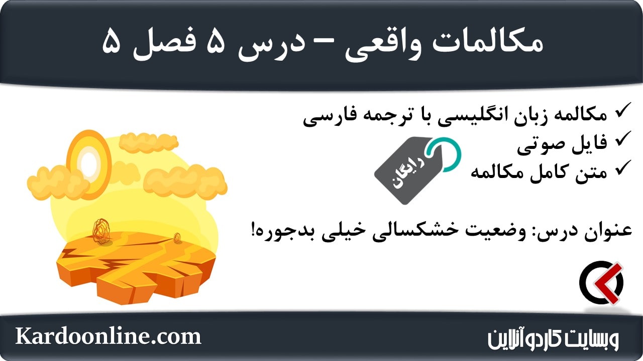 مکالمات واقعی زبان انگلیسی (آب و هوا): وضعیت خشکسالی خیلی بدجوره! در این مطلب از وبسایت کاردوآنلاین، یک درس دیگر با عنوان وضعیت خشکسالی خیلی بدجوره! از مجموعه دروس مکالمات