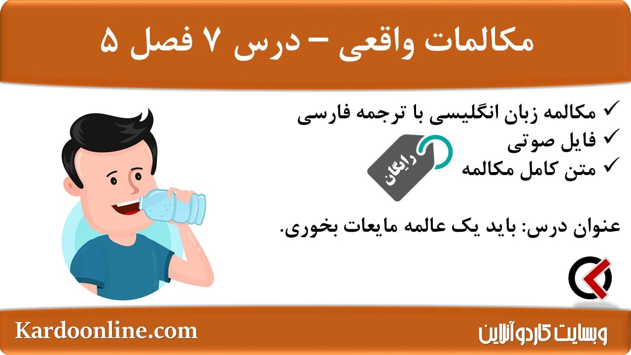 مکالمات واقعی زبان انگلیسی (آب و هوا): باید یک عالمه مایعات بخوری. در این مطلب از وبسایت کاردوآنلاین، یک درس دیگر با عنوان باید یک عالمه مایعات بخوری. از مجموعه
