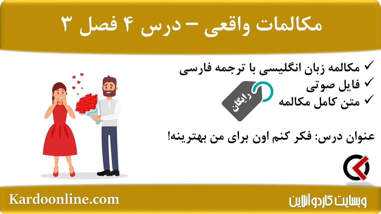 مکالمات واقعی زبان انگلیسی (عشق): فکر کنم اون برای من بهترینه! در این مطلب از وبسایت کاردوآنلاین، یک درس دیگر با عنوان فکر کنم اون برای من بهترینه! از مجموعه