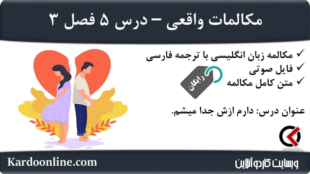 مکالمات واقعی زبان انگلیسی (عشق): دارم ازش جدا میشم. در این مطلب از وبسایت کاردوآنلاین، یک درس دیگر با عنوان دارم ازش جدا میشم. از مجموعه دروس مکالمات واقعی زبان