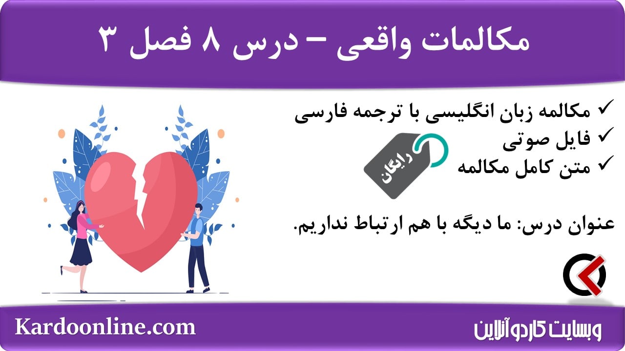 مکالمات واقعی زبان انگلیسی (عشق): ما دیگه با هم ارتباط نداریم. در این مطلب از وبسایت کاردوآنلاین، یک درس دیگر با عنوان ما دیگه با هم ارتباط نداریم. از مجموعه