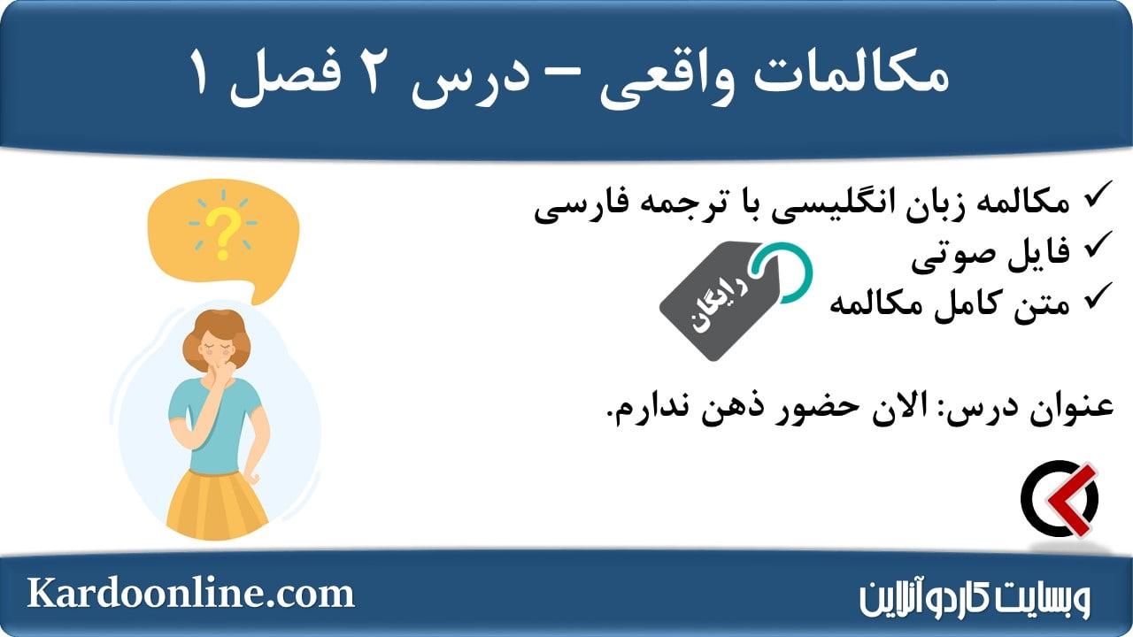 مکالمات واقعی زبان انگلیسی (حافظه): الان حضور ذهن ندارم. در این مطلب از وبسایت کاردوآنلاین، یک درس دیگر با عنوان الان حضور ذهن ندارم. از مجموعه دروس مکالمات واقعی زبان