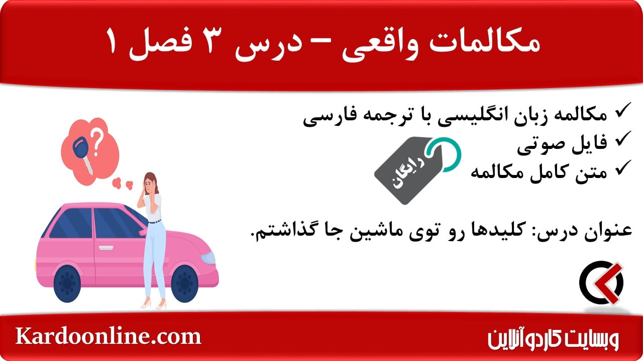 مکالمات واقعی زبان انگلیسی (حافظه): کلیدها رو توی ماشین جا گذاشتم. در این مطلب از وبسایت کاردوآنلاین، یک درس دیگر با عنوان کلیدها رو توی ماشین جا گذاشتم. از مجموعه