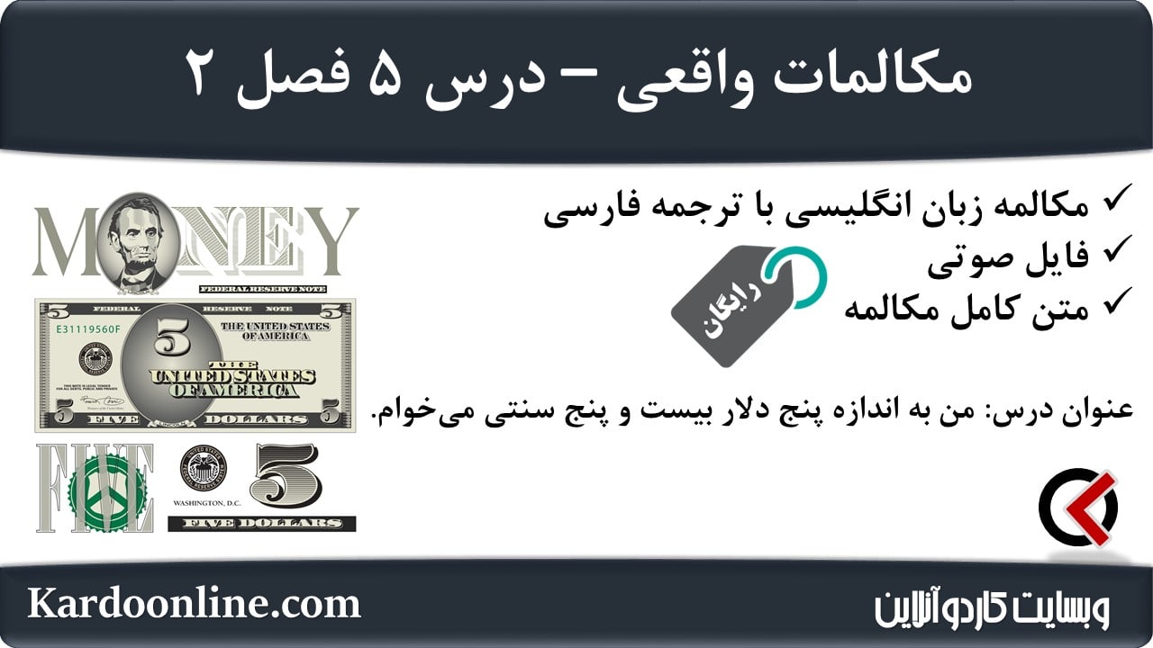 مکالمات واقعی زبان انگلیسی (پول): من به اندازه پنج دلار بیست و پنج سنتی میخوام. در این مطلب از وبسایت کاردوآنلاین، یک درس دیگر با عنوان من به اندازه پنج