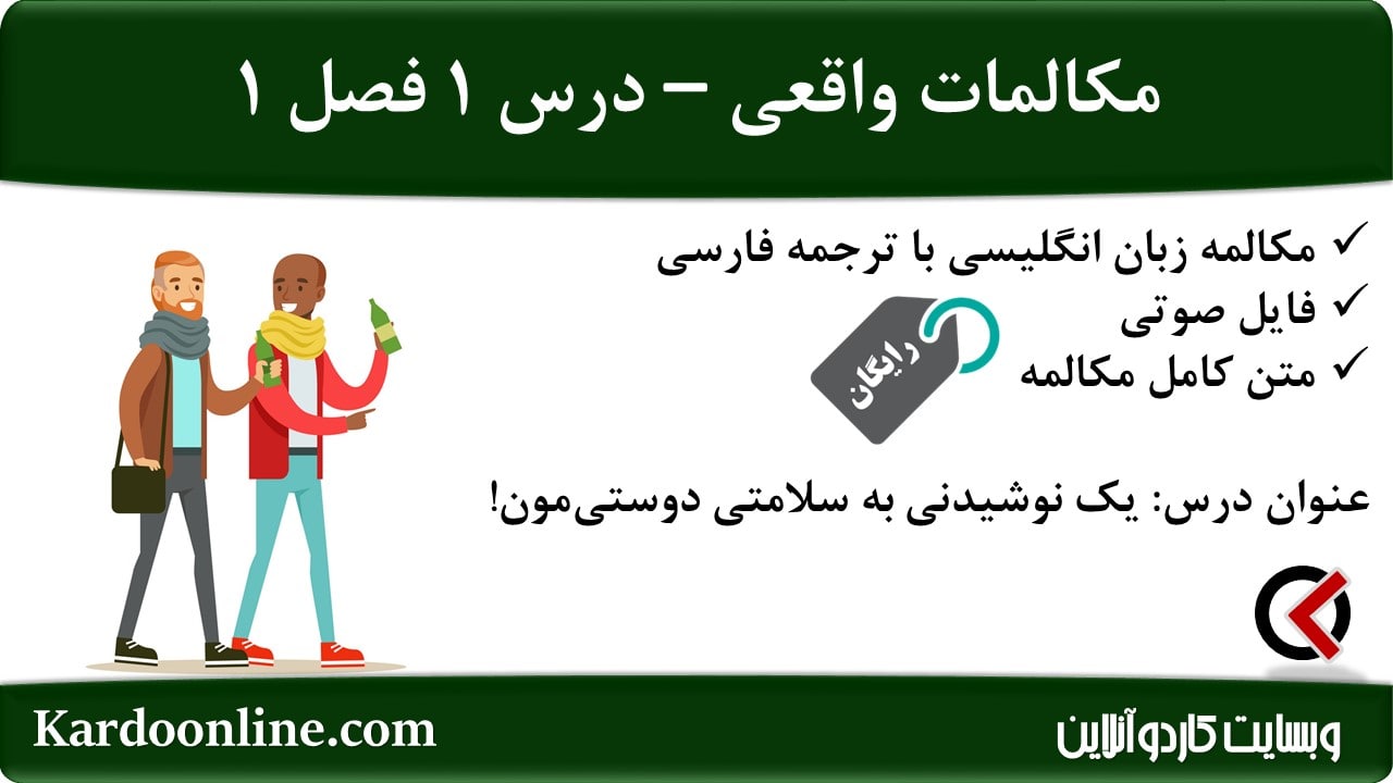 مکالمات واقعی زبان انگلیسی (دوستی): یک نوشیدنی به سلامتی دوستیمون! در این مطلب از وبسایت کاردوآنلاین، یک درس دیگر با عنوان یک نوشیدنی به سلامتی دوستیمون! از مجموعه دروس مکالمات