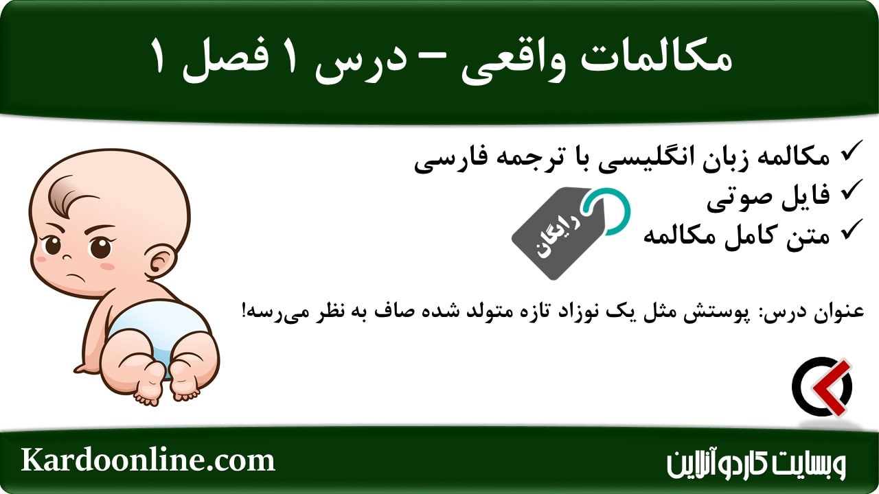 مکالمات واقعی زبان انگلیسی (مد): پوستش مثل یک نوزاد تازه متولد شده صاف به نظر میرسه! در این مطلب از وبسایت کاردوآنلاین، یک درس دیگر با عنوان پوستش مثل یک