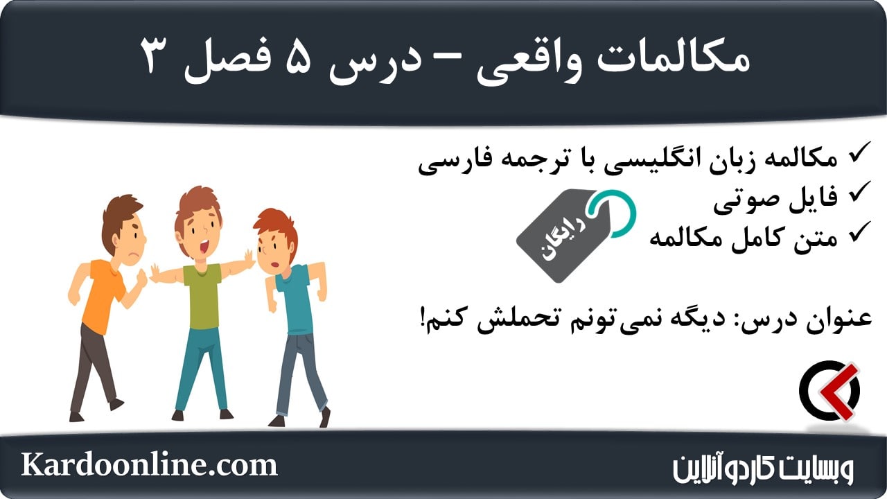 مکالمات واقعی زبان انگلیسی (احساسات): دیگه نمیتونم تحملش کنم! در این مطلب از وبسایت کاردوآنلاین، یک درس دیگر با عنوان دیگه نمیتونم تحملش کنم! از مجموعه دروس مکالمات واقعی زبان