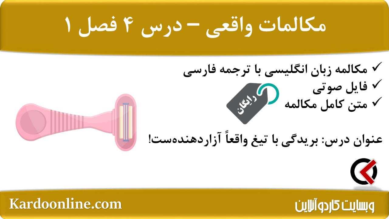 مکالمات واقعی زبان انگلیسی (مد): بریدگی با تیغ واقعاً آزاردهندهست! در این مطلب از وبسایت کاردوآنلاین، یک درس دیگر با عنوان بریدگی با تیغ واقعاً آزاردهندهست! از مجموعه دروس مکالمات
