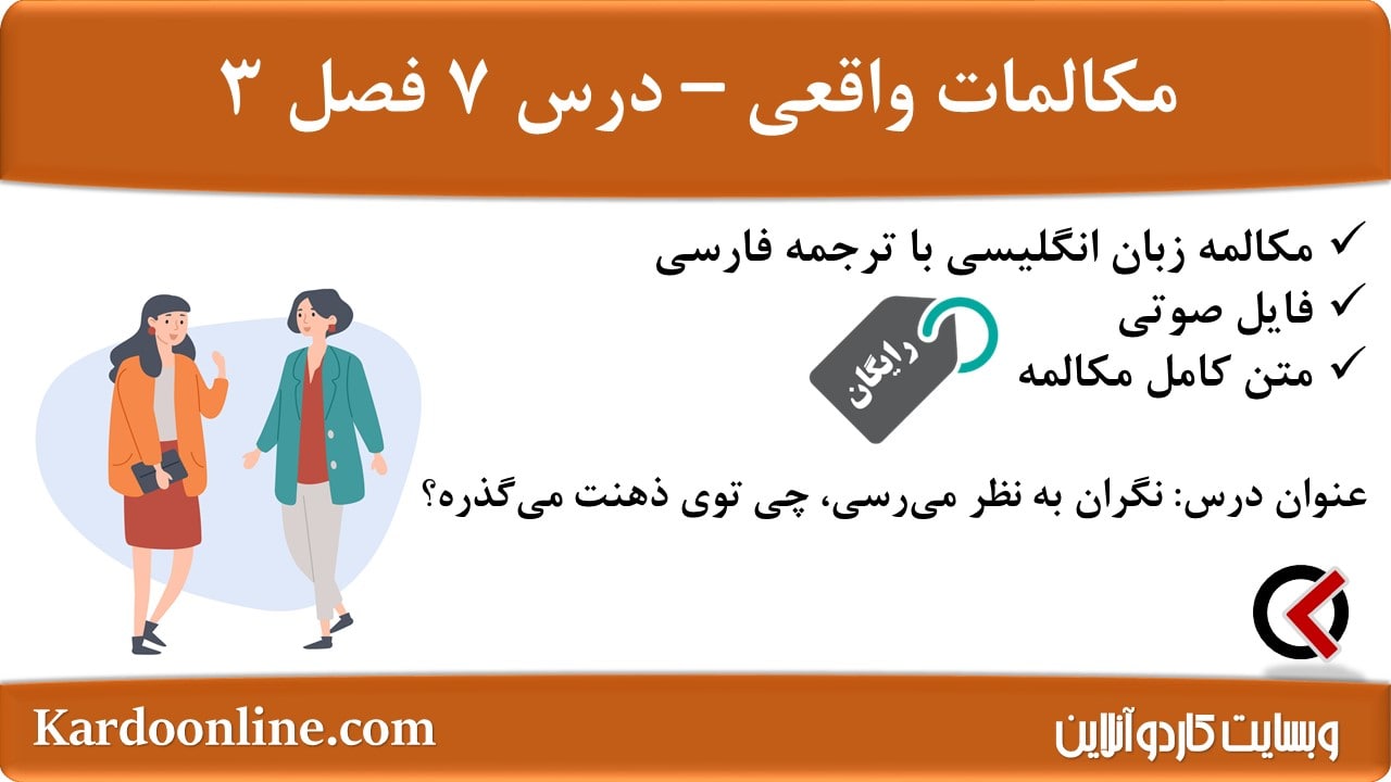 مکالمات واقعی زبان انگلیسی (احساسات): نگران به نظر میرسی، چی توی ذهنت میگذره؟ در این مطلب از وبسایت کاردوآنلاین، یک درس دیگر با عنوان نگران به نظر میرسی، چی توی