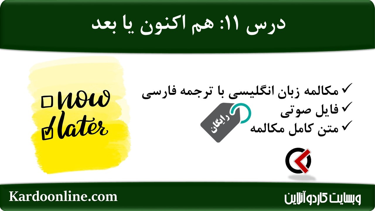 صد مکالمه زبان انگلیسی: درس ۱۱ هم اکنون یا بعد در این مطلب از وبسایت کاردوآنلاین، درس دیگری را در رابطه با مکالمات و دیالوگ های روزمره زبان انگلیسی برای