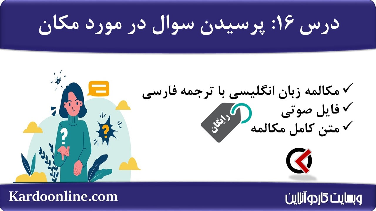 صد مکالمه زبان انگلیسی: درس ۱۶ پرسیدن سوال در مورد مکان در این مطلب از وبسایت کاردوآنلاین، درس دیگری را در رابطه با مکالمات و دیالوگ های روزمره زبان انگلیسی