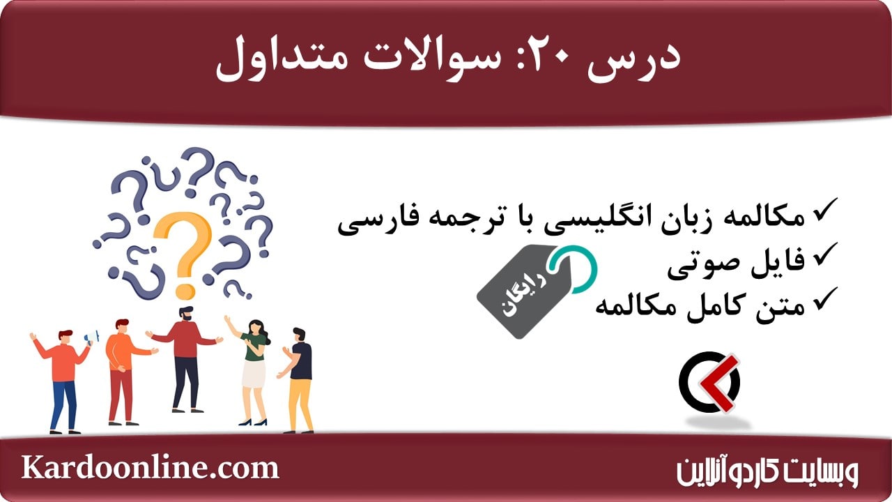 صد مکالمه زبان انگلیسی: درس ۲۰ سوالات متداول در این مطلب از وبسایت کاردوآنلاین، درس دیگری را در رابطه با مکالمات و دیالوگ های روزمره زبان انگلیسی برای شما در