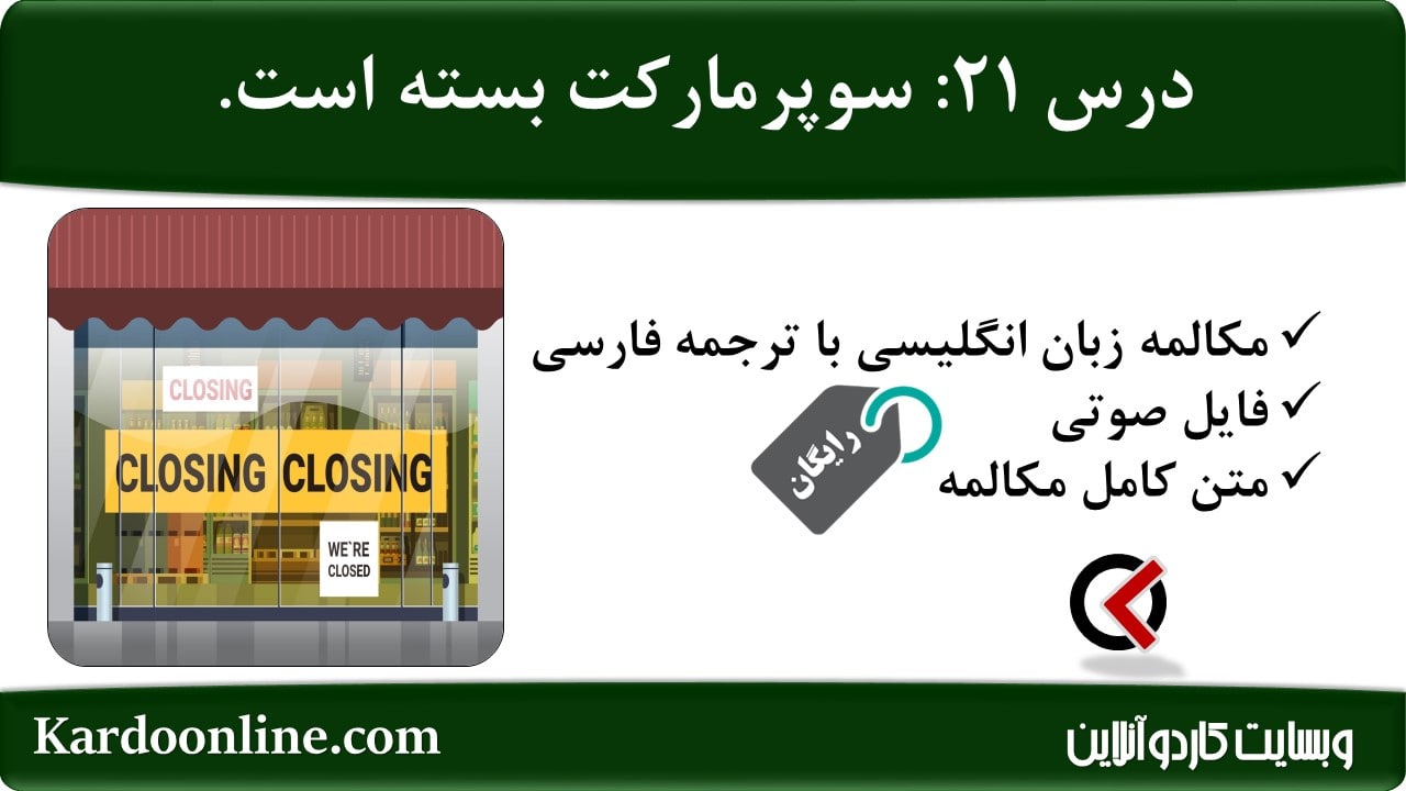 صد مکالمه زبان انگلیسی: درس ۲۱ سوپرمارکت بسته است. در این مطلب از وبسایت کاردوآنلاین، درس دیگری را در رابطه با مکالمات و دیالوگ های روزمره زبان انگلیسی برای شما