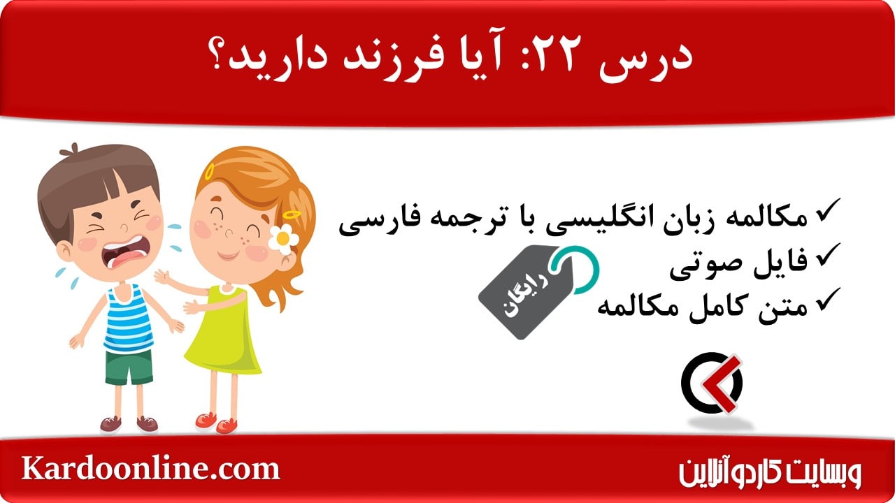 صد مکالمه زبان انگلیسی: درس ۲۲ آیا فرزند دارید؟ در این مطلب از وبسایت کاردوآنلاین، درس دیگری را در رابطه با مکالمات و دیالوگ های روزمره زبان انگلیسی برای شما