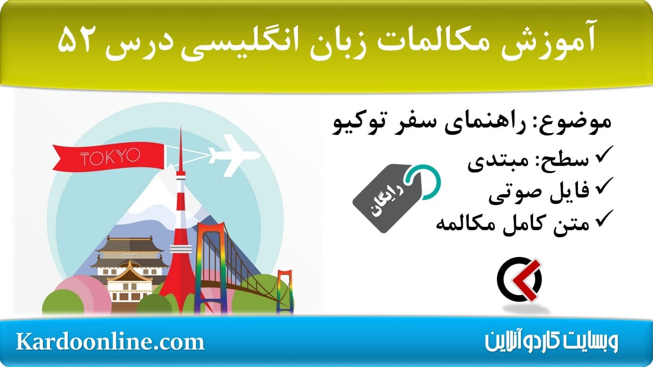 سری آموزش رایگان مکالمات زبان انگلیسی سطح ابتدایی #۵۲ را در این قسمت از مرکز دانلود منابع زبان های خارجی کاردوآنلاین به شما عزیزان تقدیم می کنیم.