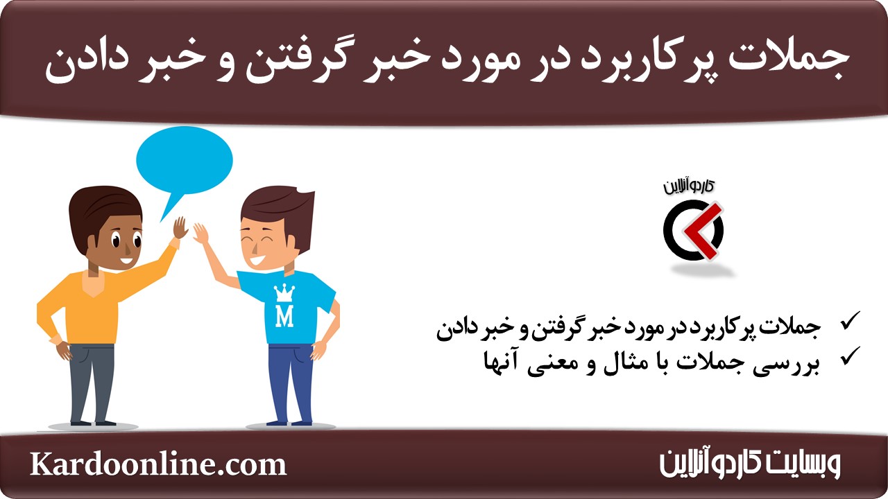 https://dl.kardoonline.com/Posts/Situational%20English/138559.mp3 جملات زبان انگلیسی در مورد خبر گرفتن و خبر دادن یکی دیگر از موضوعاتی که برای آن نیز نیاز به جملات کاربردی متعددی دارید خبرهای اجتماعی است که در