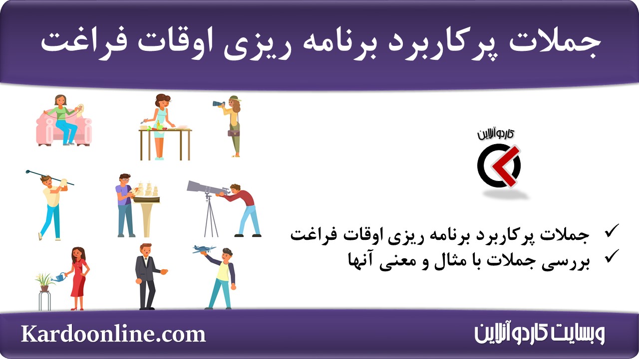 https://dl.kardoonline.com/Posts/Situational%20English/138558.mp3 جملات زبان انگلیسی در مورد برنامه ریزی اوقات فراغت یکی دیگر از موقعیت هایی که ممکن است برای بهتر عمل کردن در آن نیاز به جملات پرکاربرد داشته باشید