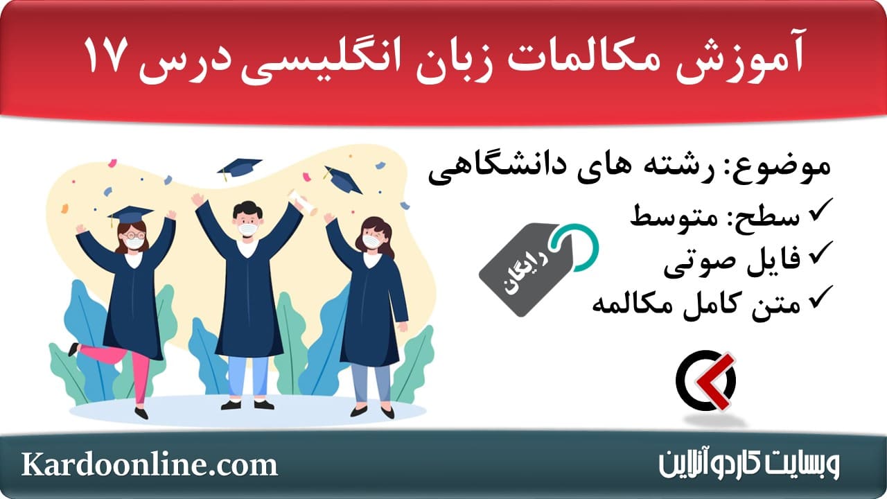 آموزش مکالمات زبان انگلیسی سطح میانی #۱۷ سری آموزش رایگان مکالمات سطح بندی شده زبان انگلیسی یک مجموعه رایگان و سه سطحی از مکالمات زبان انگلیسی است که توسط وبسایت