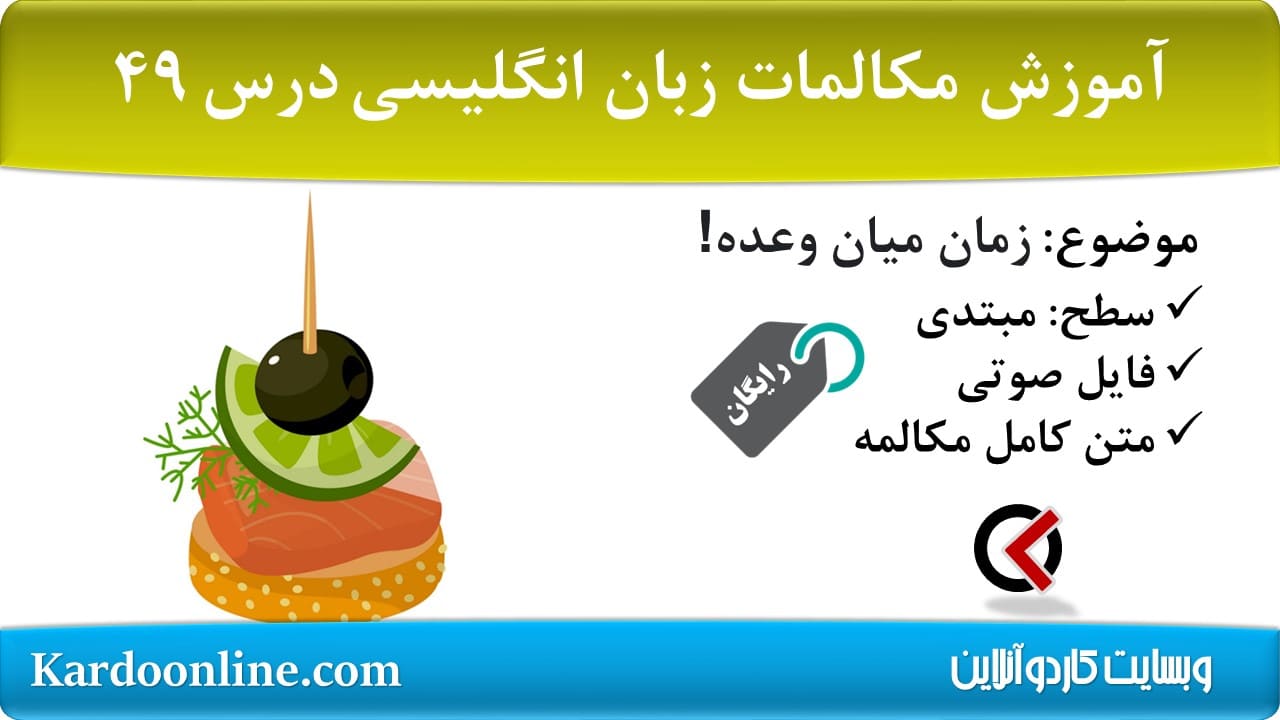 آموزش مکالمات زبان انگلیسی سطح ابتدایی #۴۹ سری آموزش رایگان مکالمات سطح بندی شده زبان انگلیسی یک مجموعه رایگان و سه سطحی از مکالمات زبان انگلیسی است که توسط وبسایت
